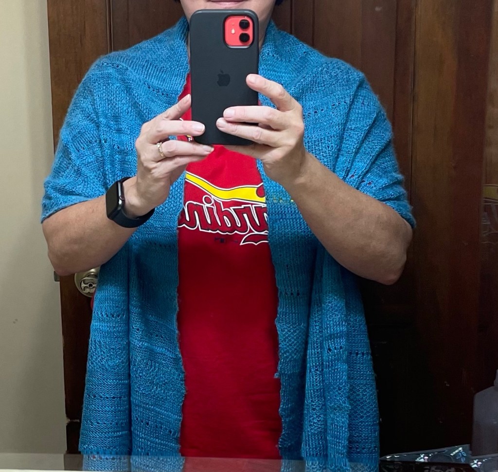 I really didn’t do much in June except work! I did finish my shawl. This is a big accomplishment for this new knitter!