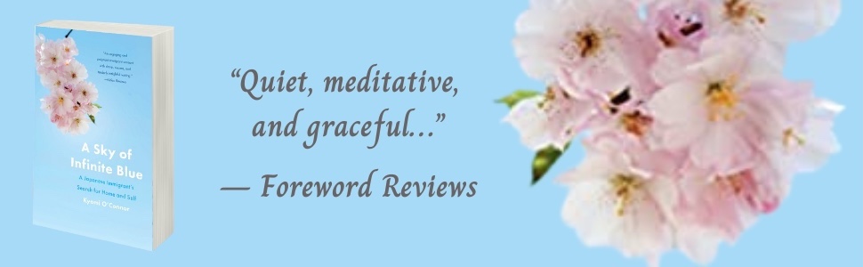 Hello and thank you. This is Kyomi O’Connor, the author of “A Sky of Infinite Blue- A Japanese Immigrant’s Search for Home and Self.” This memoir is about my life-long search to live in peace and truth. Starting in my childhood, my life in Japan was filled with emotional difficulties and painful events. Almost like an act of abandoning my life in Japan, I moved to the States in February 1990 as a post-doctoral researcher at the NIH. Soon, I fell in love with my husband-to-be, Patrick, an English cancer researcher with Irish heritage. Initially, his unconditional love and support helped me heal the wounds from my past and regain my own Self.